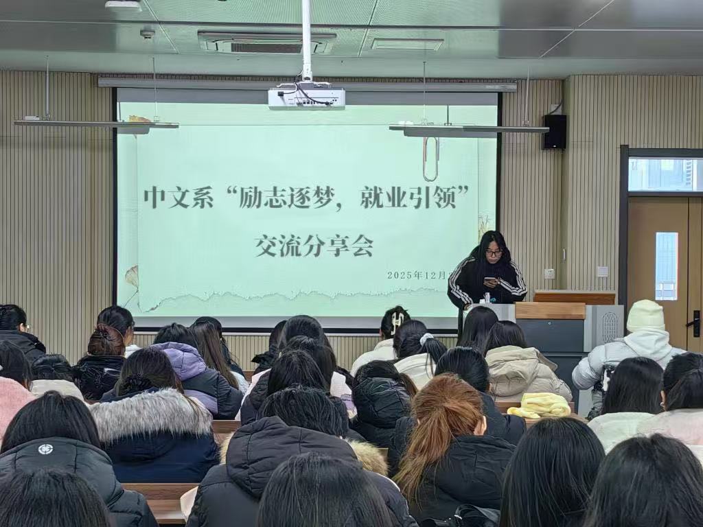 为充分发挥优秀学子的榜样引领作用,帮助同学们明晰大学成长路径,中文系于12月25日在知行楼C402成功举办“励志逐梦,就业引领”分享会,优秀学生代表庄新婷、万小玉、张丽珍担任主讲人。